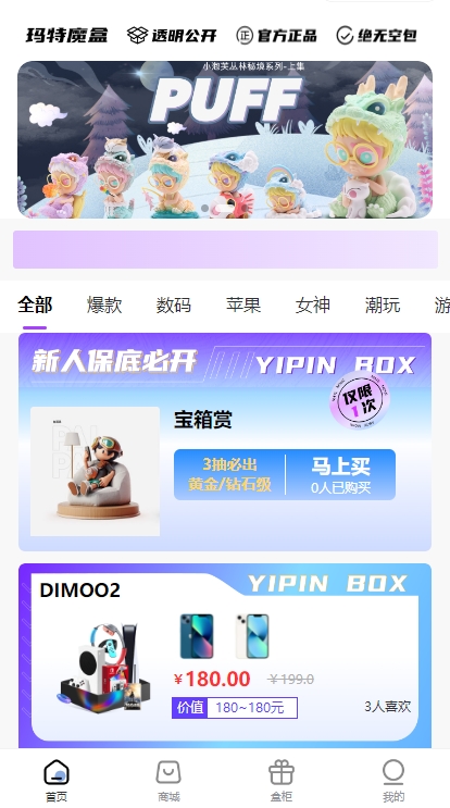 一品优帮是一款全新推出的福袋,盲盒玩法的APP。